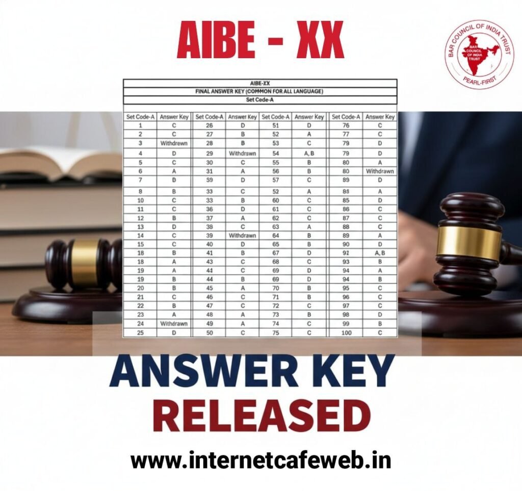 Please note that the results of the AIBE-XX examination will be published based on the final answer key. All objections received have been duly examined, and the answer key has been finalized accordingly. Kindly download the revised answer key.
