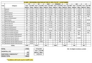 candidates who have secured equal cut-off marks, have been provisionally shortlisted